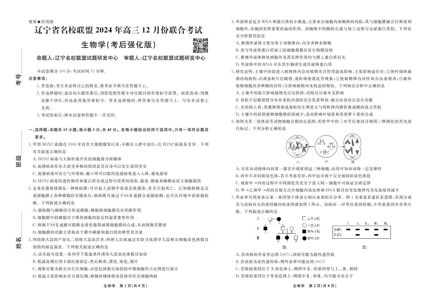 辽宁名校联盟2024年高三12月联考(考后强化版)生物