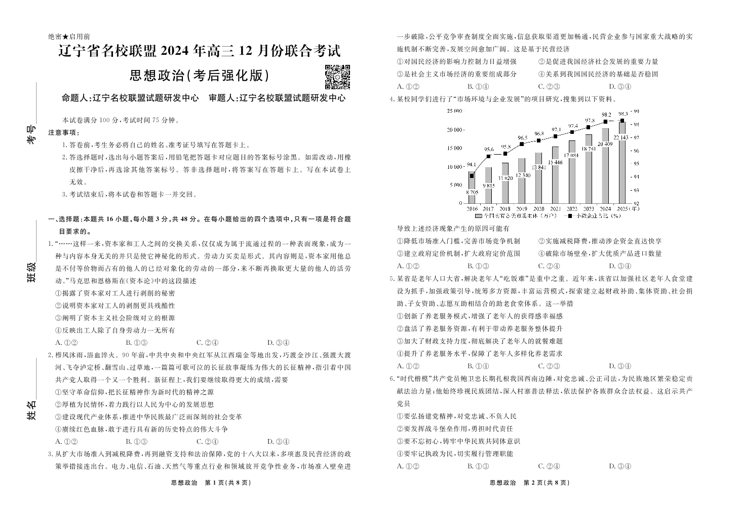 辽宁名校联盟2024年高三12月联考(考后强化版)政治