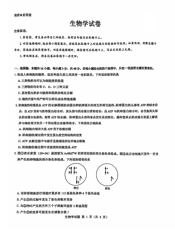 山西省三重教育2025届高三上学期12月联考生物