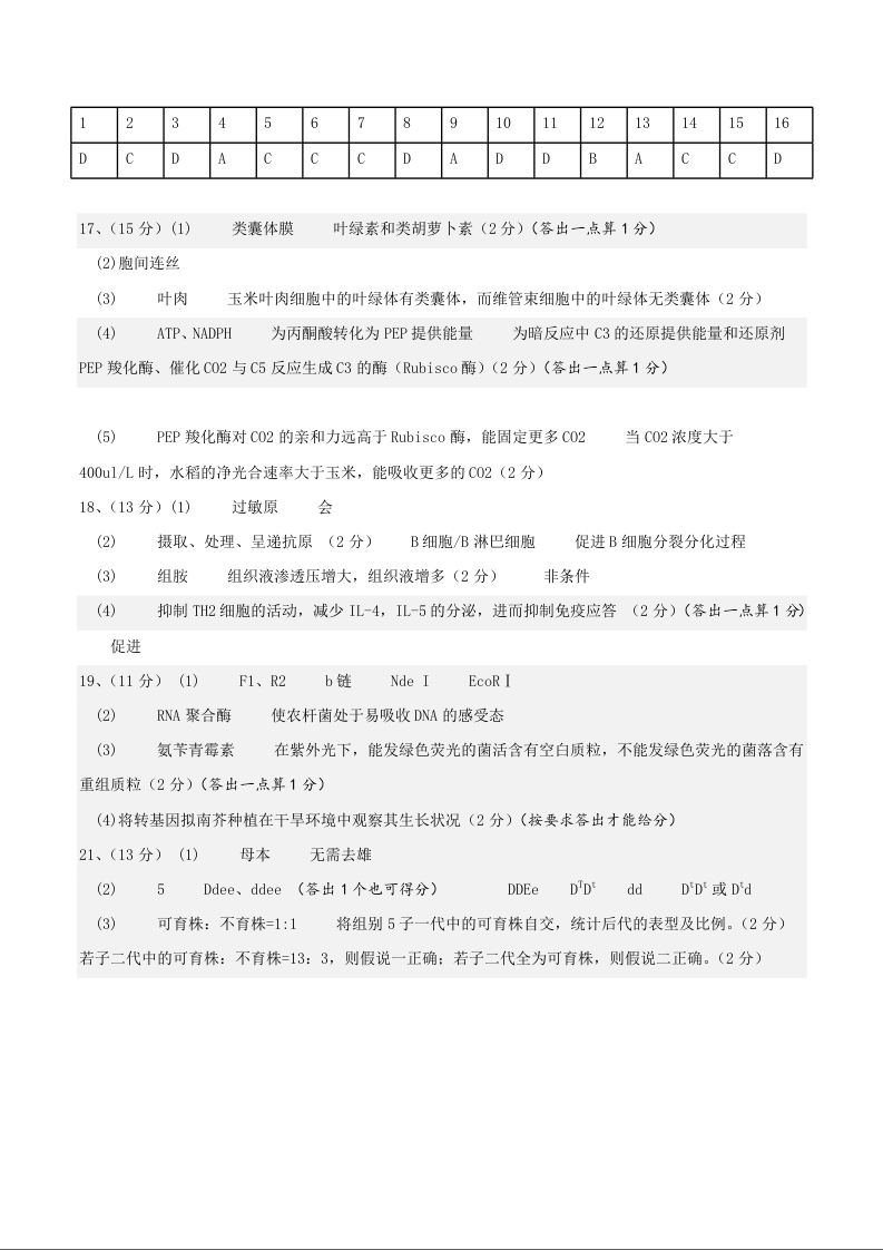 四川省成都列五中学2025届高三上学期12月月考生物答案
