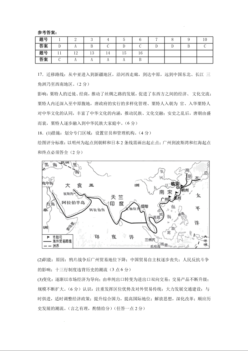 四川省成都列五中学2025届高三上学期12月月考历史答案