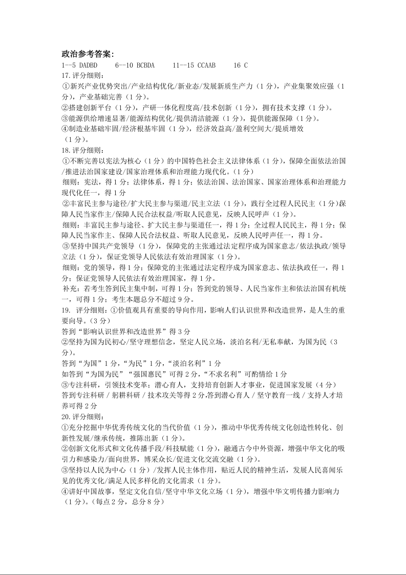 四川省名校联盟2025届高三12月联考政治答案
