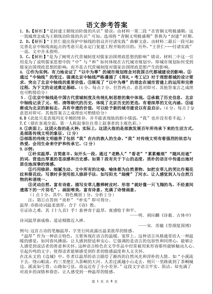 四川省遂宁市射洪中学高2022级高三一模考试语文答案