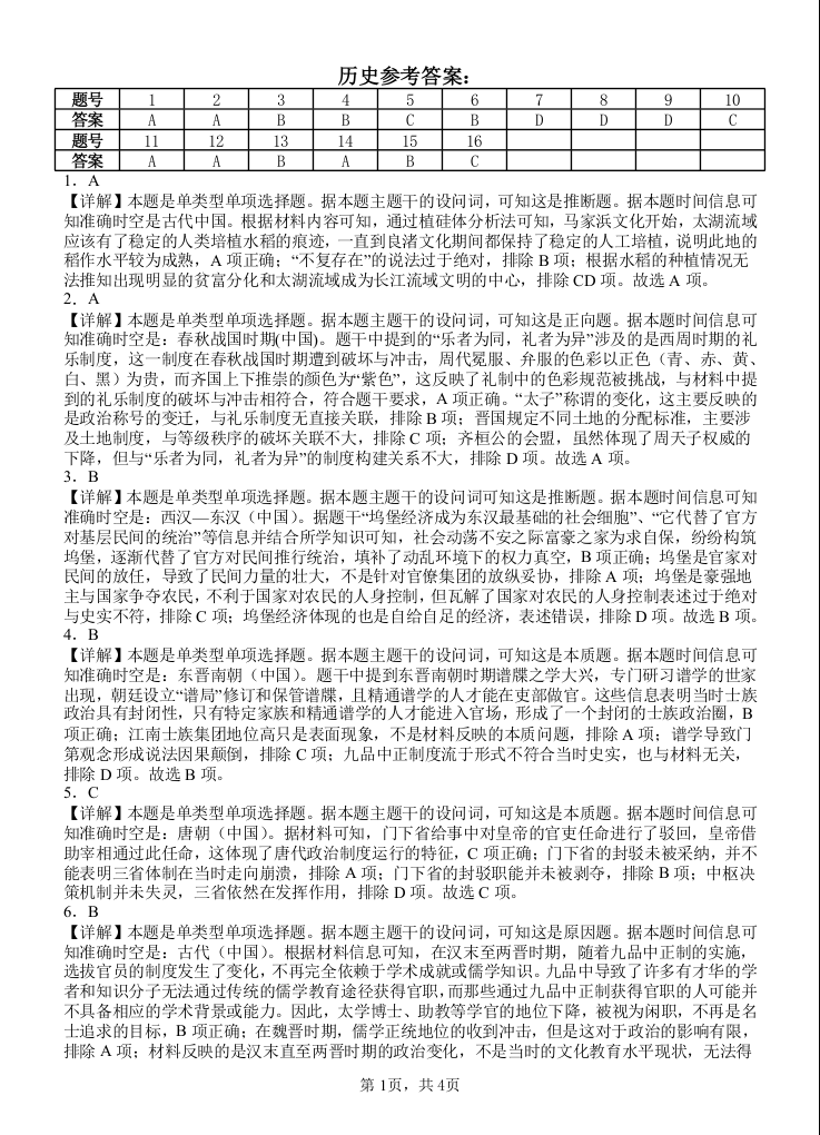 四川省遂宁市射洪中学高2022级高三一模考试历史答案