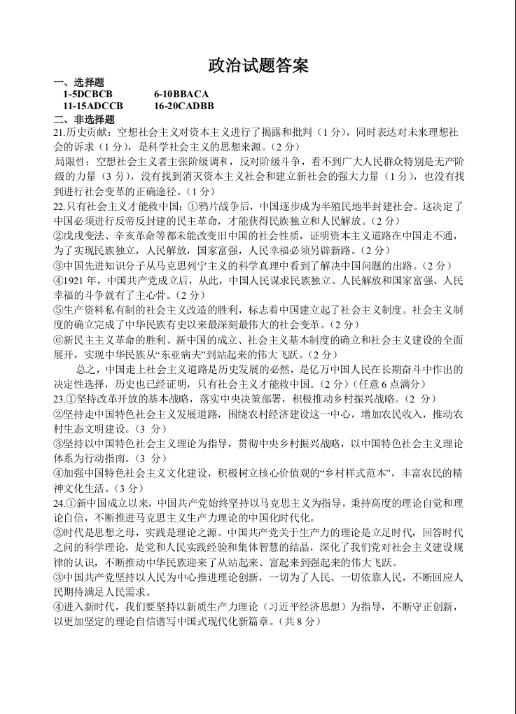 四川省遂宁市射洪中学高2022级高三一模考试政治答案