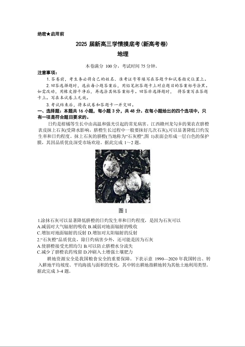 2025届新高三9月学情摸底考地理+答案