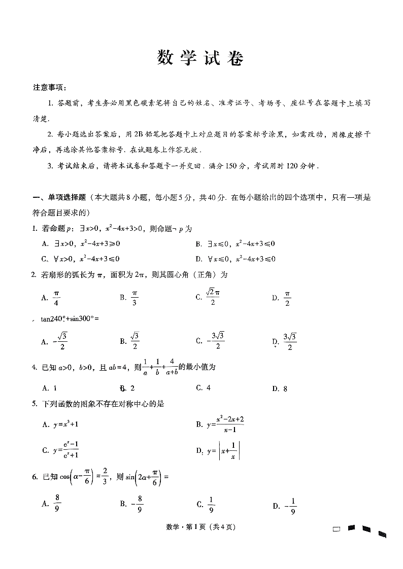 重庆市第八中学2025届高考适应性月考卷(一)数学