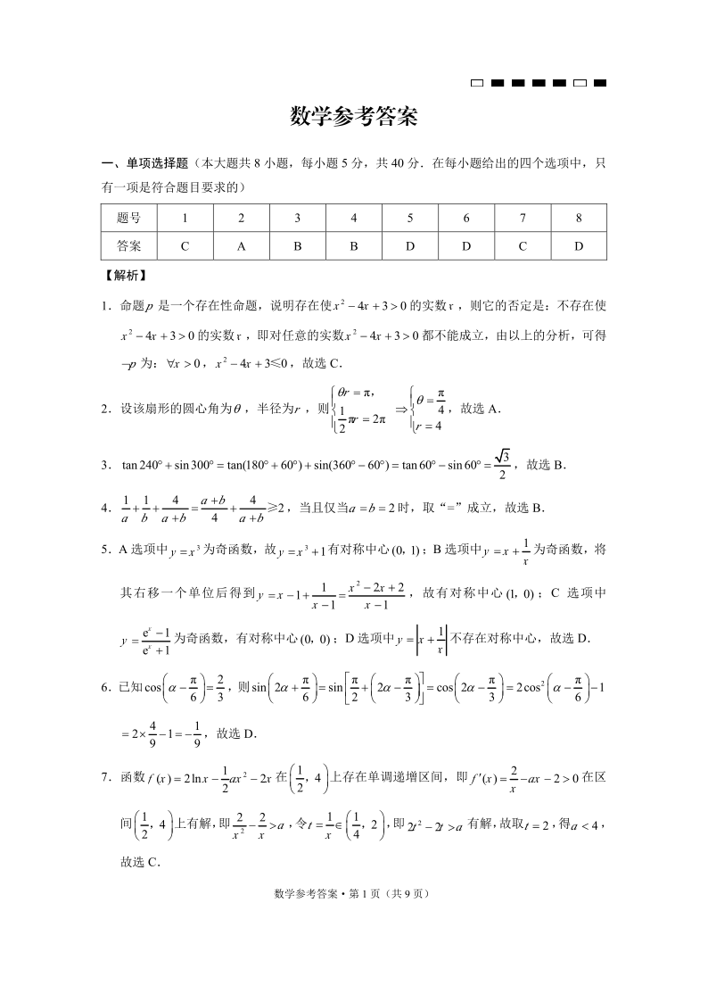 重庆市第八中学2025届高考适应性月考卷(一)数学答案
