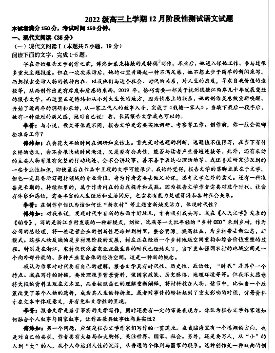 四川省成都市树德中学2025届高三上学期12月月考语文+答案