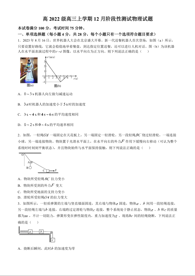 四川省成都市树德中学2025届高三上学期12月月考物理+答案