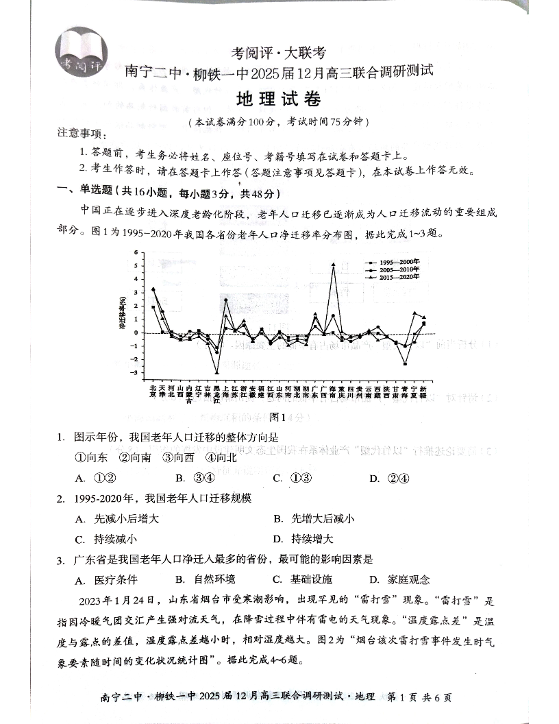 广西省考阅评•大联考南宁二中•柳铁一中2025届12月高三联合调研测试地理