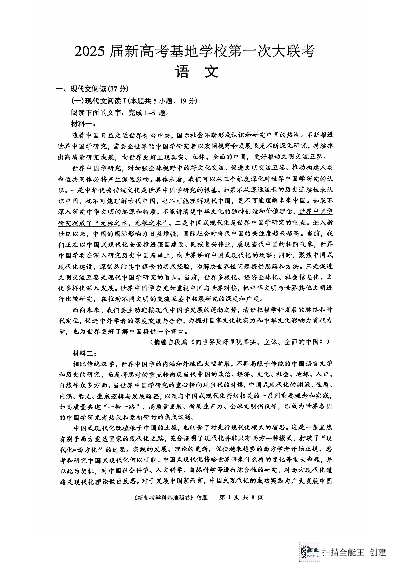 江苏省南通市新高考基地学校2025届高三上学期12月月考语文