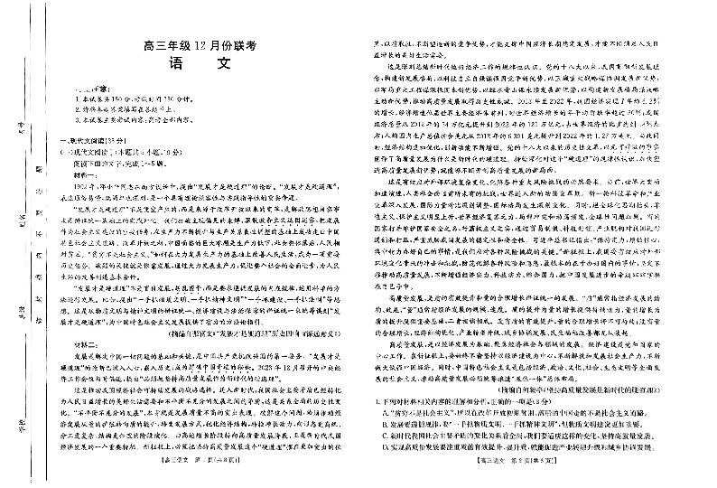 河北省保定市十县一中2025届高三上学期12月联考试题语文