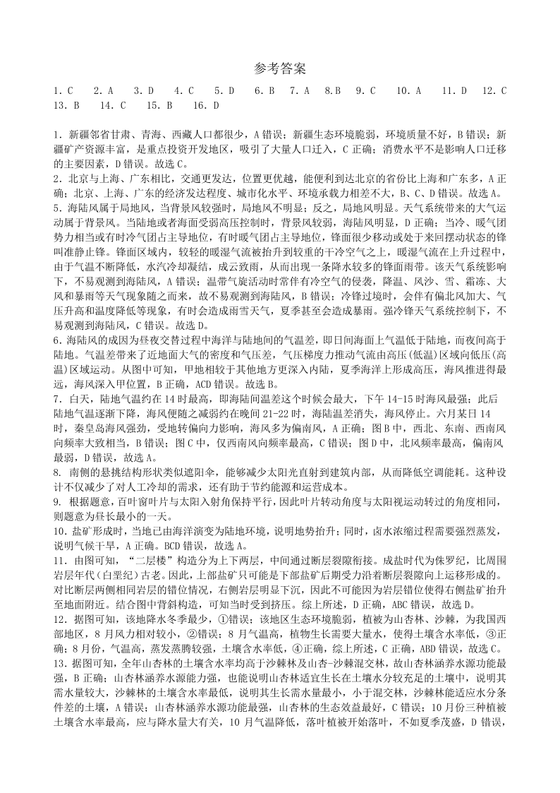 四川省成都市第七中学2025届高三上学期12月阶段性考试地理答案