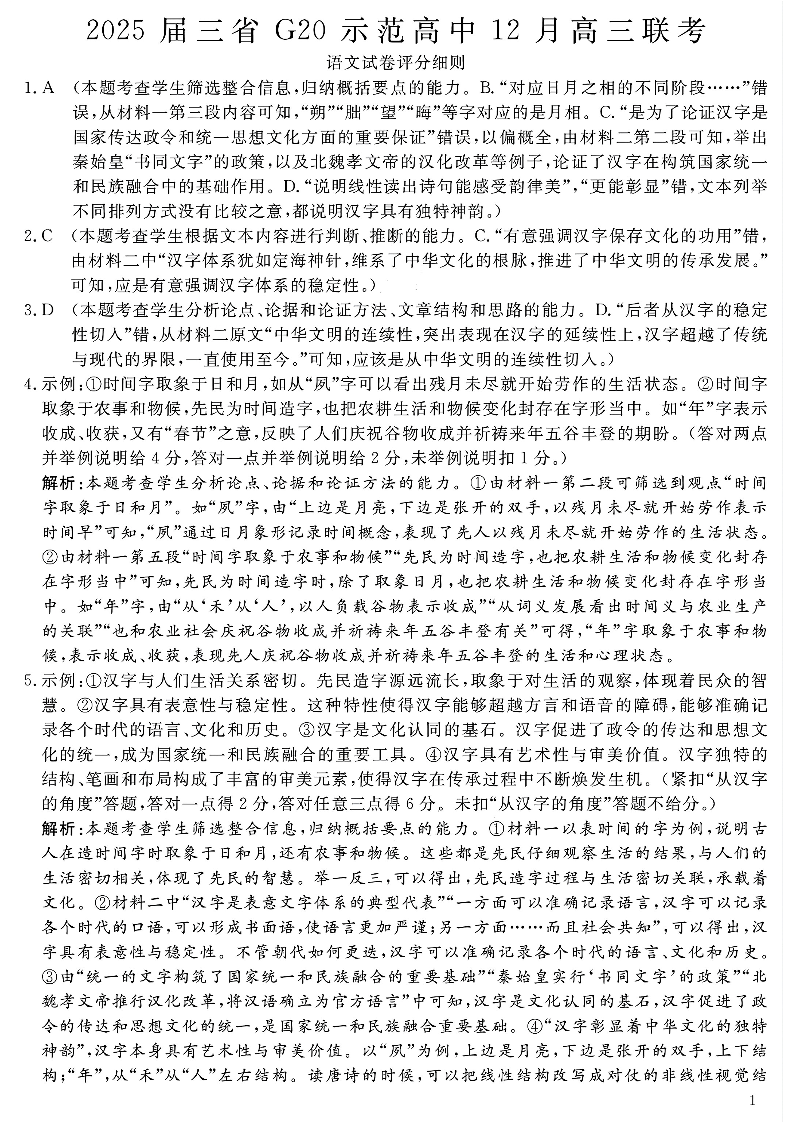豫赣疆三省G20示范高中2025届高三上学期12月联考语文答案