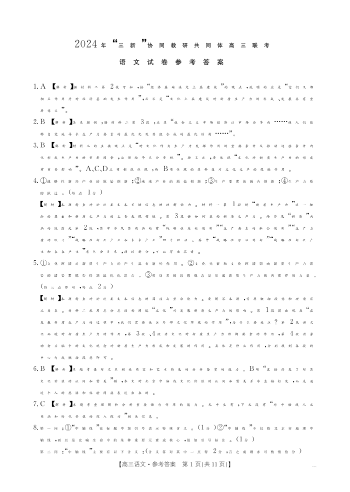 江西省“三新”协同教研共同体名校2025届高三上学期12月联考语文答案