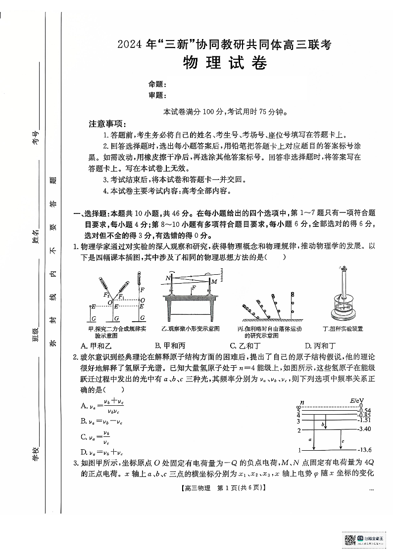 江西省“三新”协同教研共同体名校2025届高三上学期12月联考物理