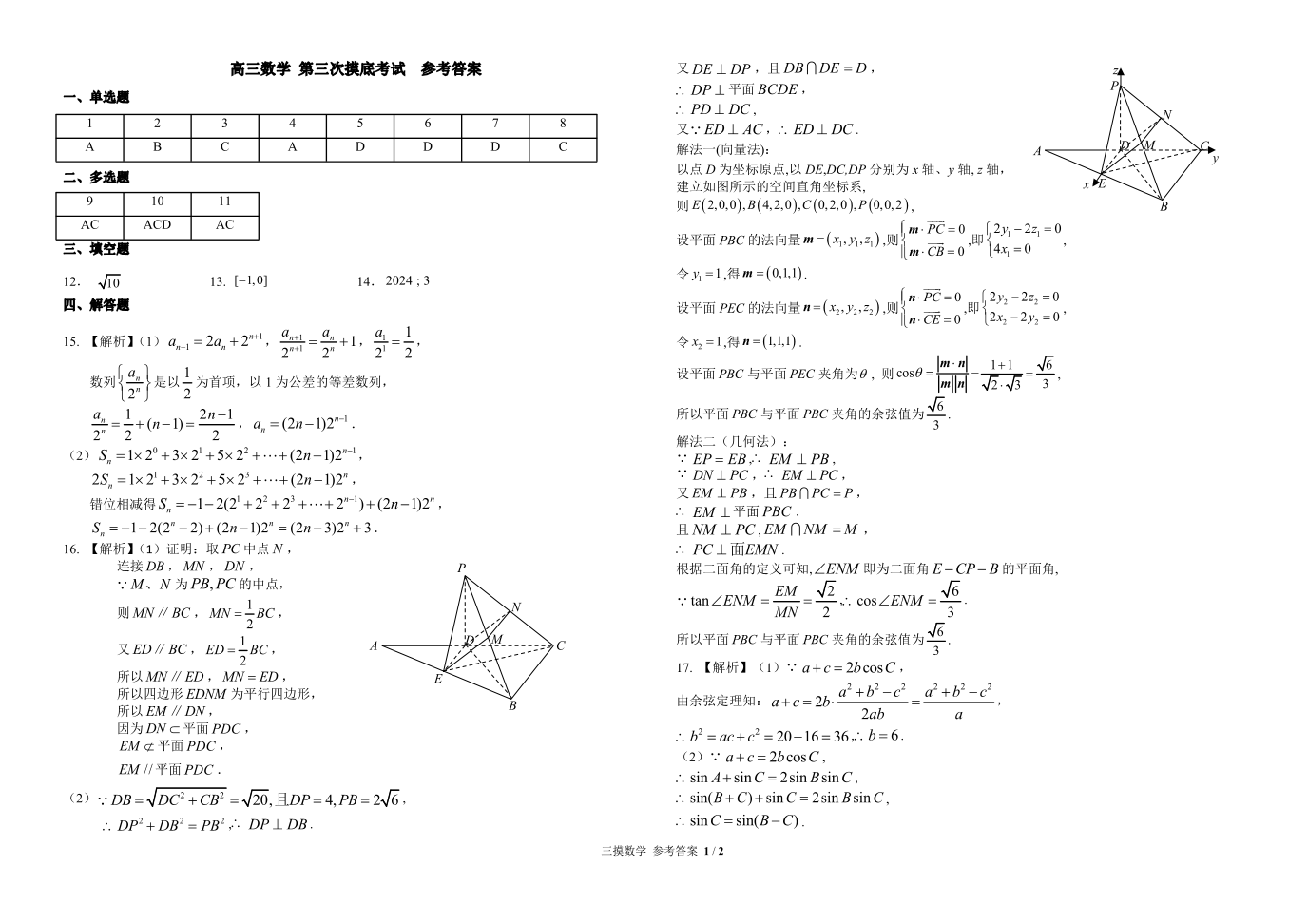 吉林省东北师大附中2025届高三上学期第三次模拟考试数学答案
