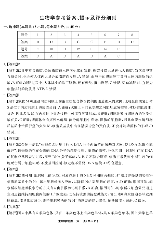 安徽省师大附中等名校2025届高三年级12月阶段性联考检测生物学答案