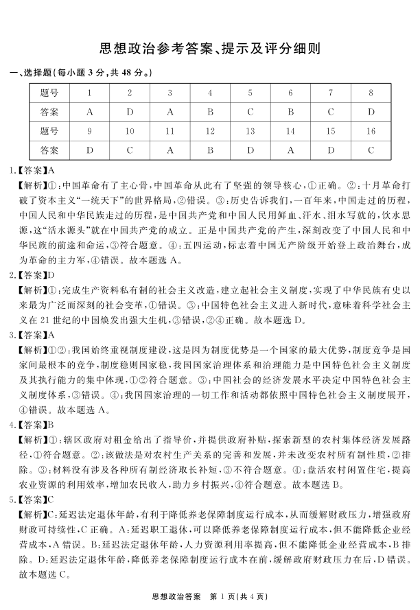 安徽省师大附中等名校2025届高三年级12月阶段性联考检测政治答案