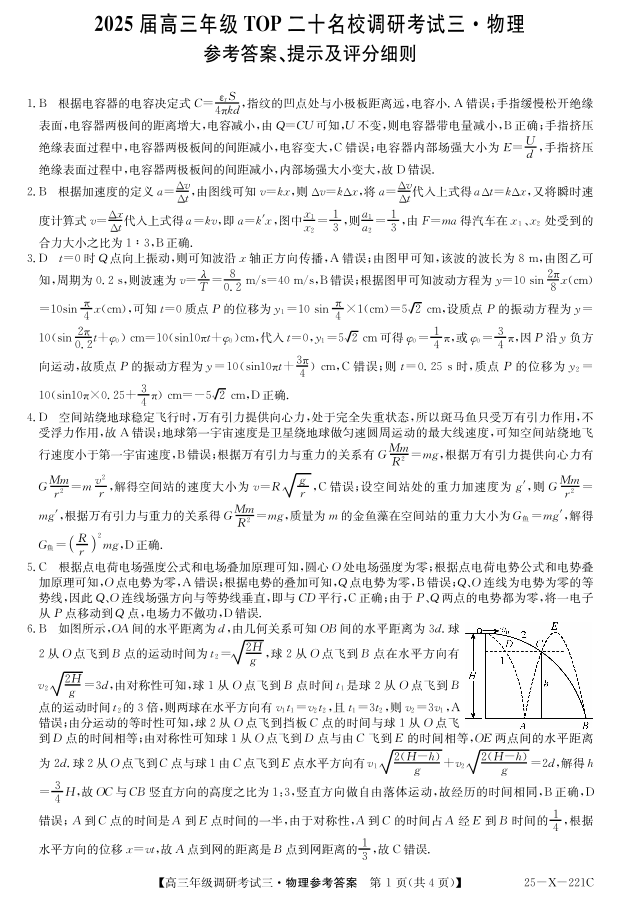河南省TOP二十名校2025届高三上学期调研考试(三)物理答案