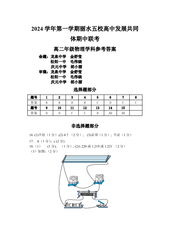 浙江省丽水五校高中发展共同体2024-2025学年上高二期中联考物理答案