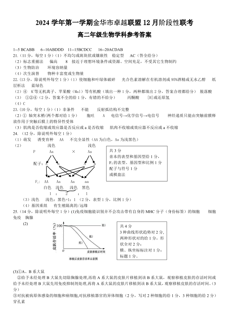 浙江省金华市卓越联盟2024-2025学年高二12月阶段性联考生物答案