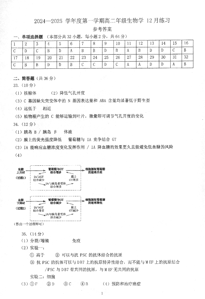 北京市理工大学附属中学2024-2025学年高二上学期12月月考生物答案