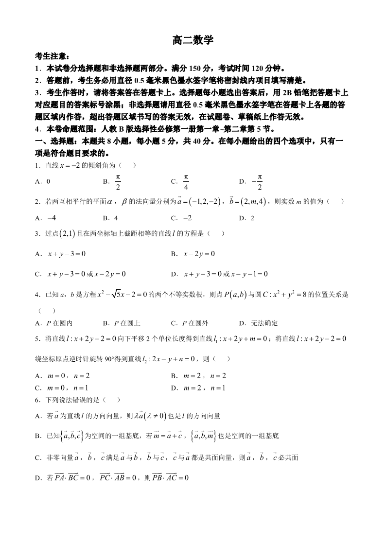 贵州省部分学校2024-2025学年高二上学期11月联考数学+答案