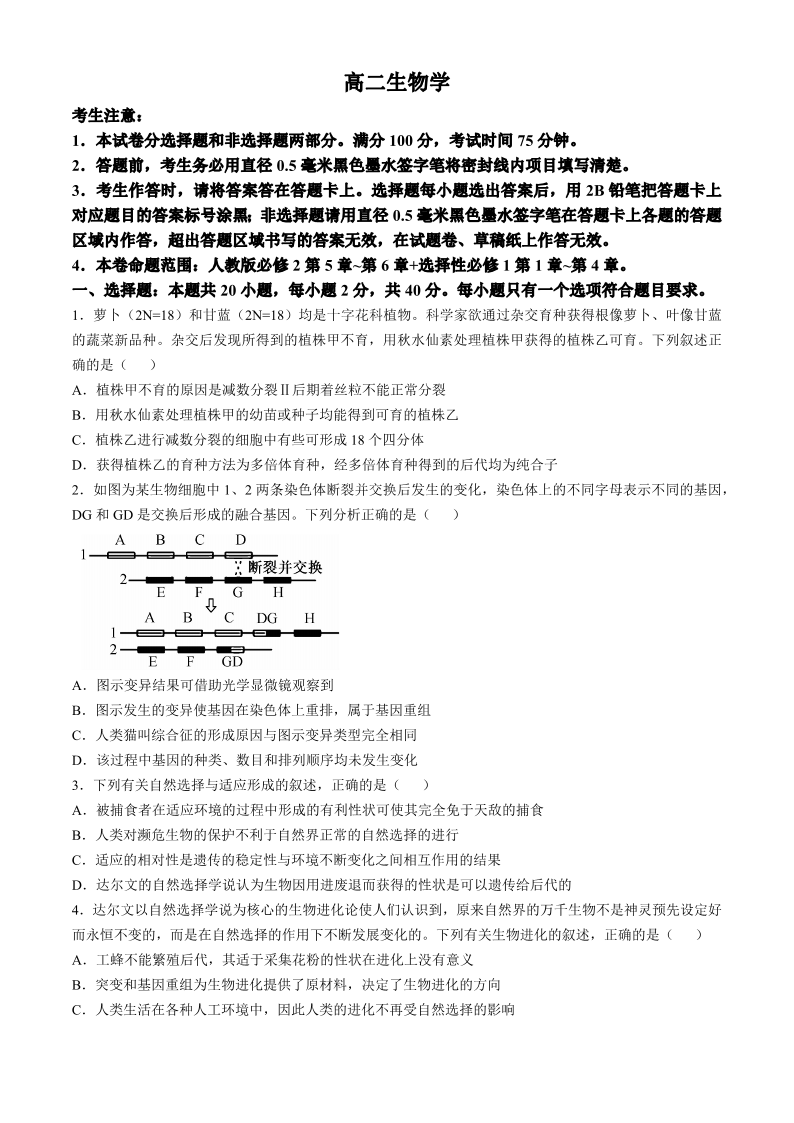 贵州省部分学校2024-2025学年高二上学期11月联考生物+答案