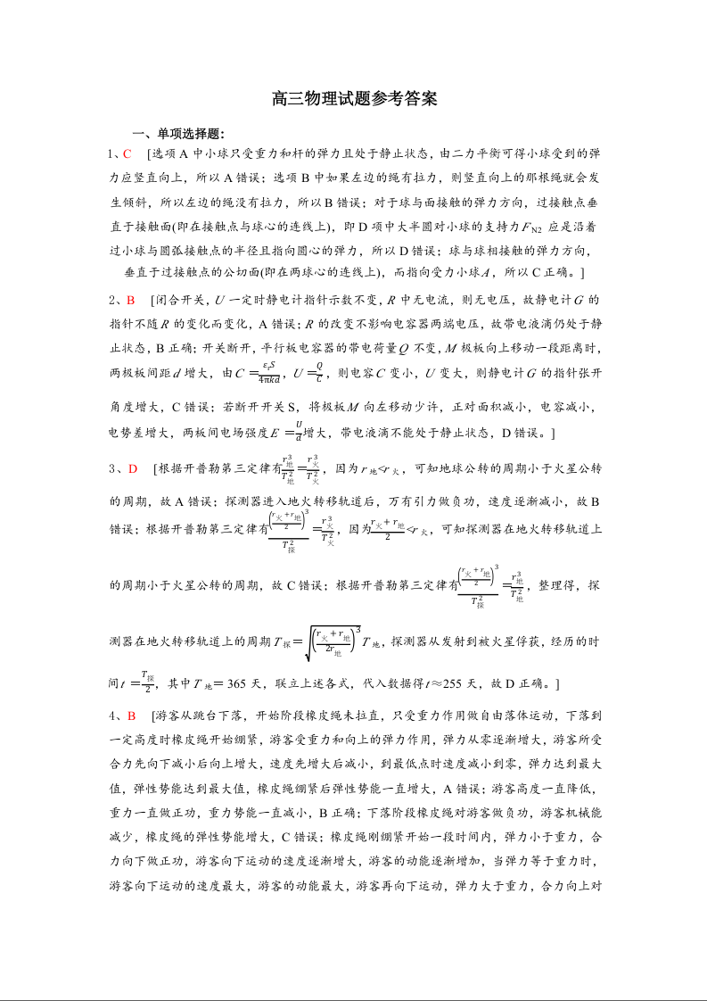湖北省随州市部分高中联考协作体2025届高三上学期12月联考物理答案