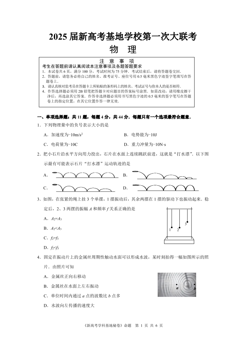 江苏省南通市新高考基地学校2025届高三上学期12月第一次大联考物理