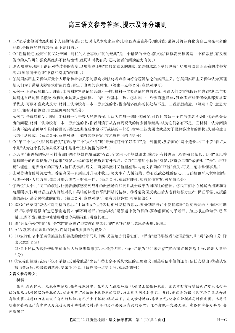河南省部分高中2025届高三年级12月质量检测巩固语文答案