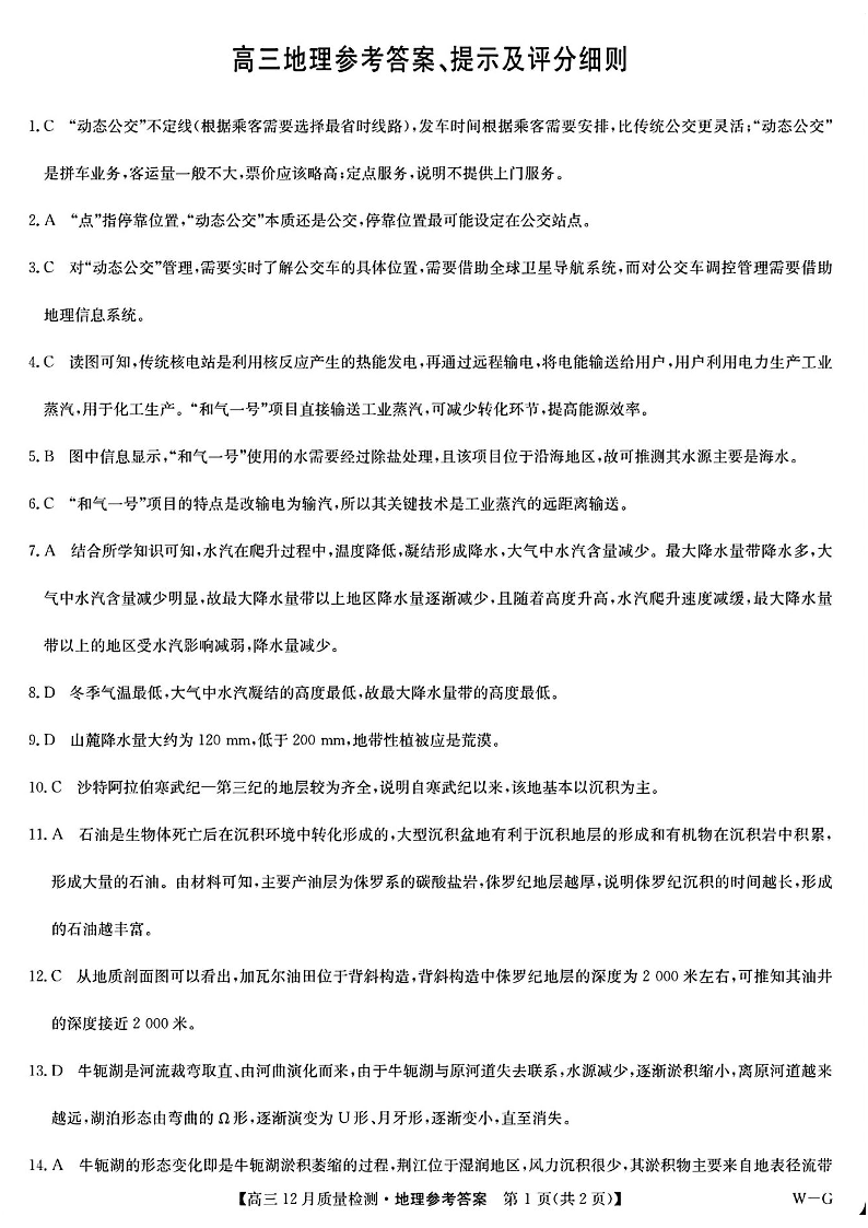 河南省部分高中2025届高三年级12月质量检测巩固地理答案