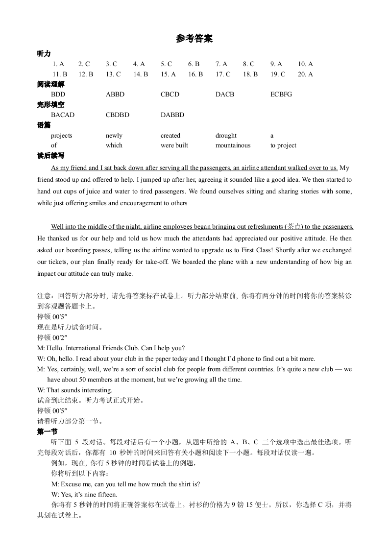 四川省南充高级中学2024-2025学年度上学期期中考试英语答案