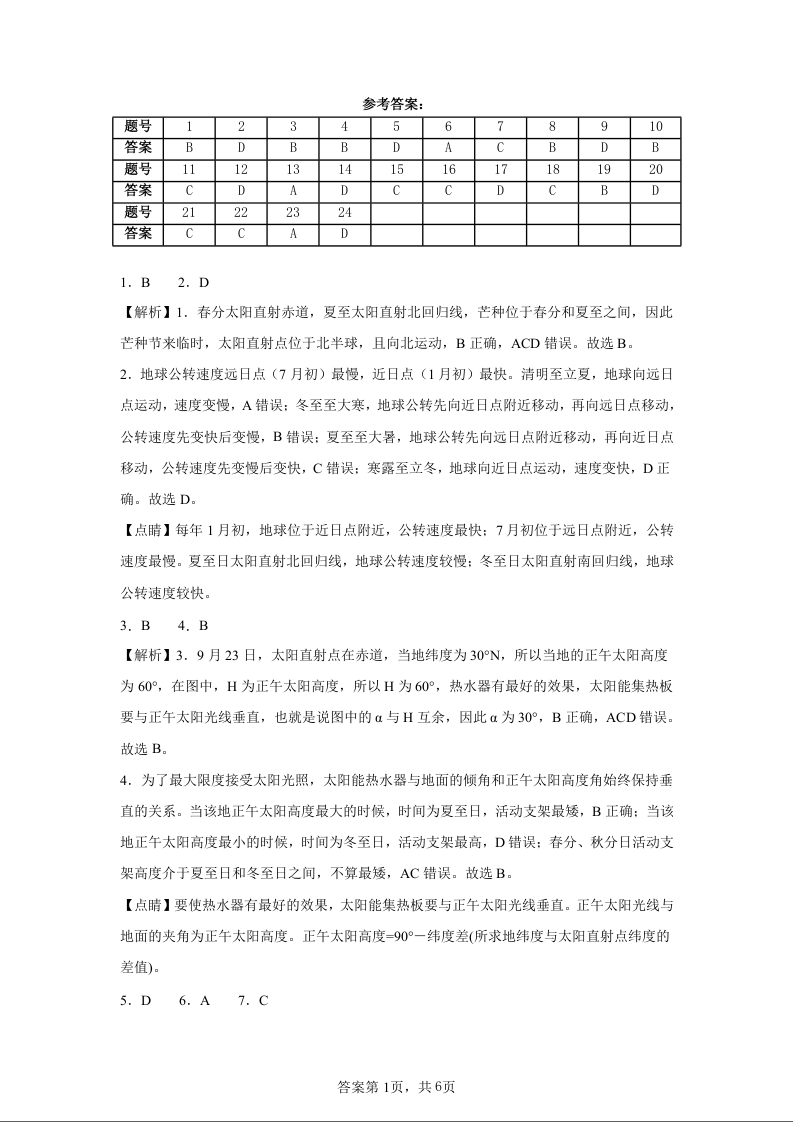 四川省南充高级中学2024-2025学年度上学期期中考试地理答案