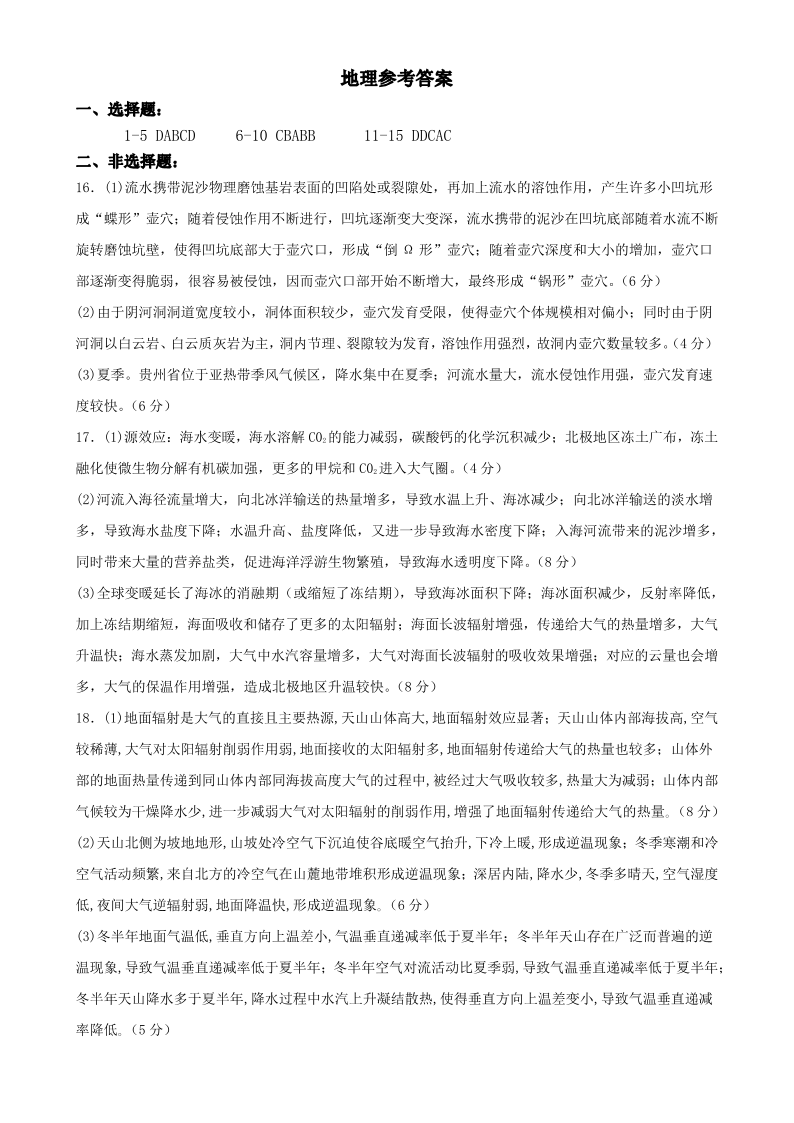 四川省南充市嘉陵一中高2023级高二上期11月考地理答案