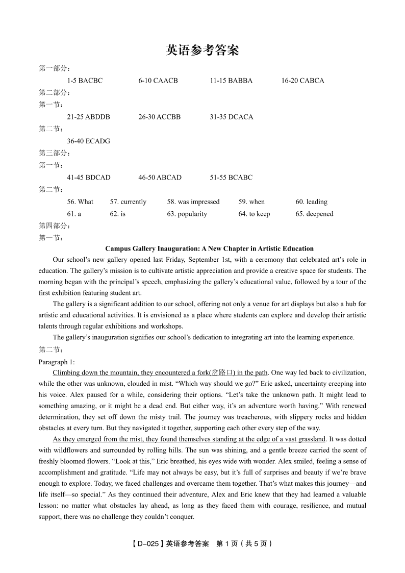 安徽省皖江名校2025届高三上学期12月质量检测英语答案