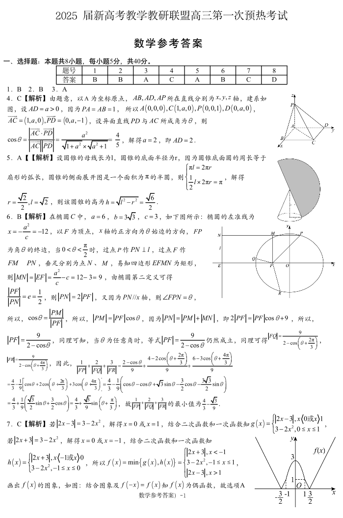 湖南省长郡二十校联盟2025届高三上学期第一次预热演练数学答案