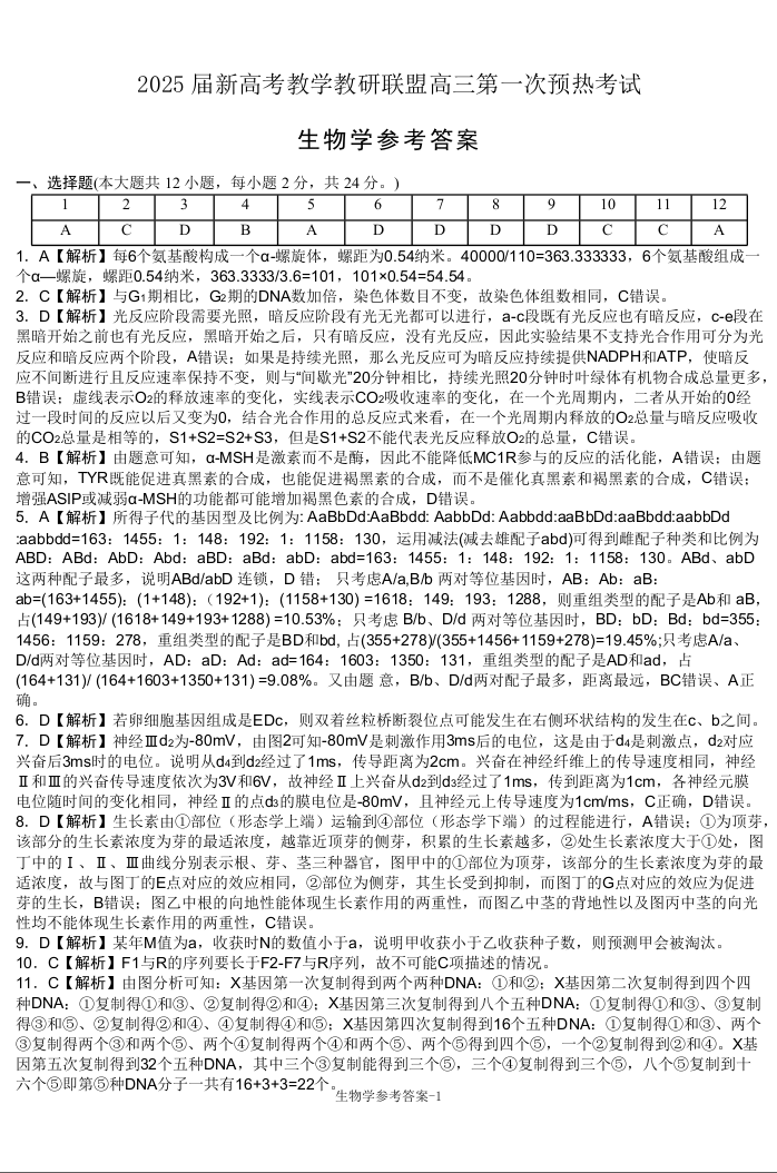 湖南省长郡二十校联盟2025届高三上学期第一次预热演练生物答案