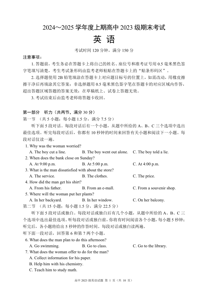 四川省成都市蓉城名校联盟2024-2025学年高二上学期期末考试英语