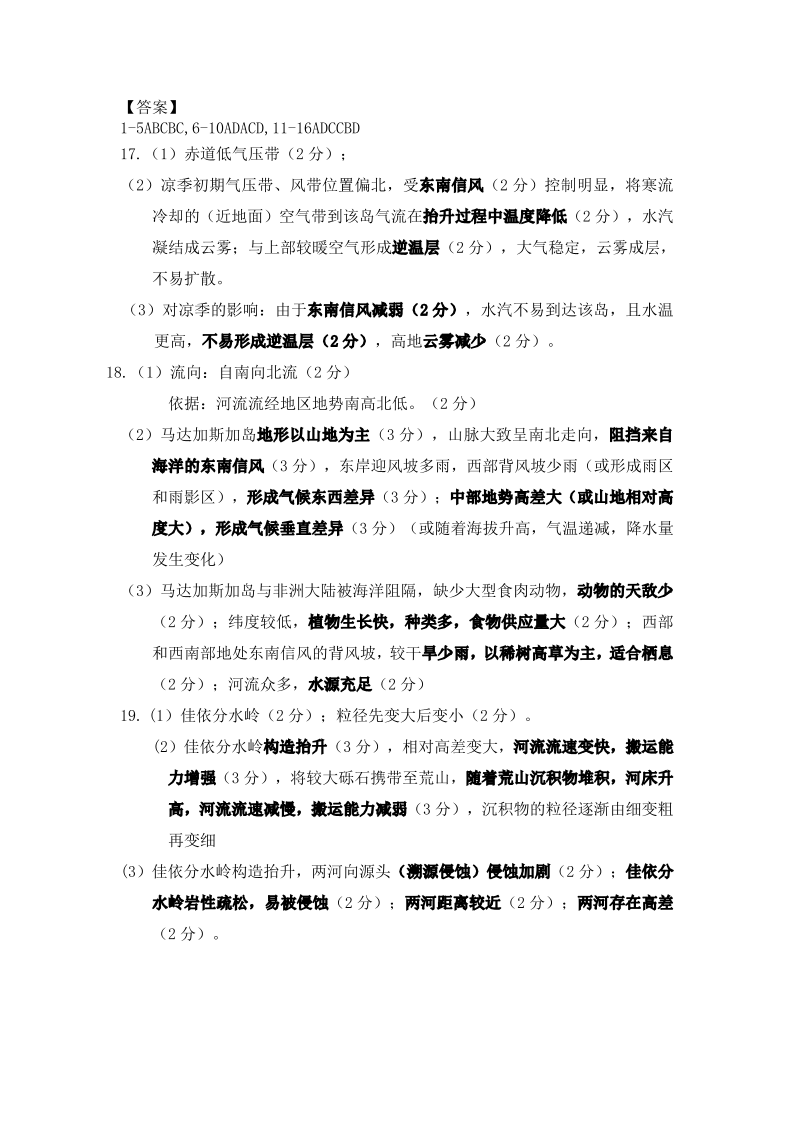 四川省绵阳市南山中学2024-2025学年高二上学期12月月考地理答案