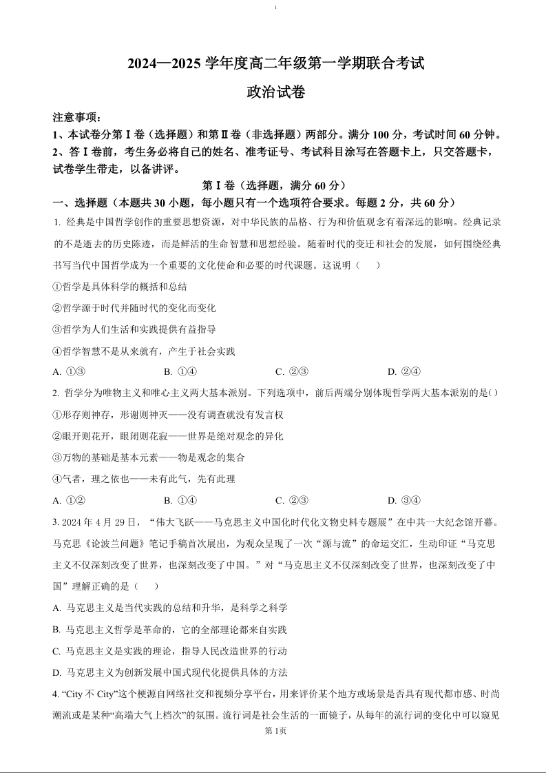 天津市三校2024-2025学年高二上学期12月联考试题政治+答案