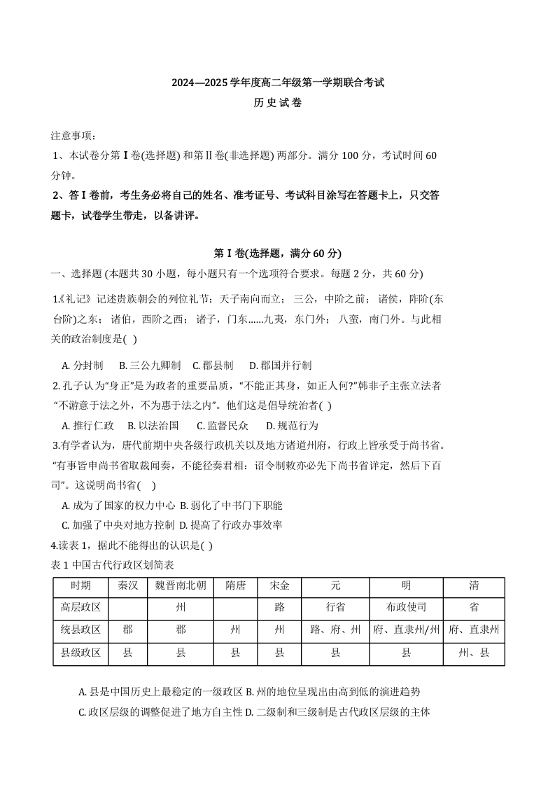 天津市三校2024-2025学年高二上学期12月联考试题历史+答案