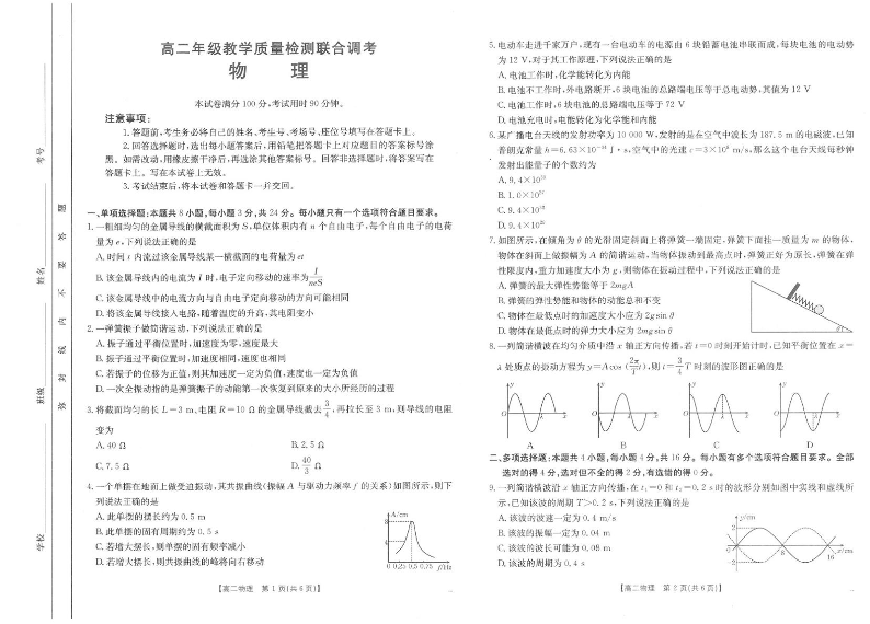 山东省部分高中2024-2025学年高二上学期12月联考物理+答案解析