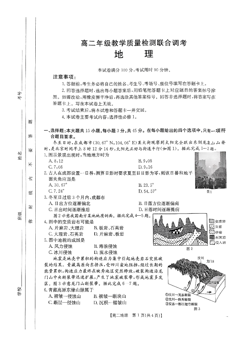 山东省部分高中2024-2025学年高二上学期12月联考地理