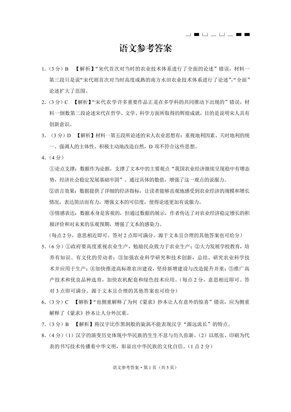 云南师范大学附属中学2025届高考适应性月考卷(七)语文答案