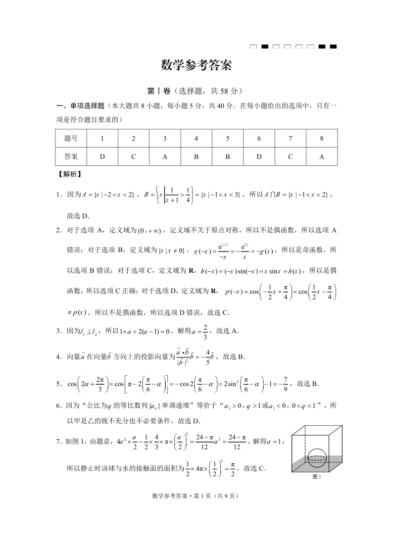 云南师范大学附属中学2025届高考适应性月考卷(七)数学答案
