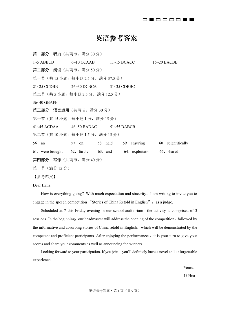 云南师范大学附属中学2025届高考适应性月考卷(七)英语答案