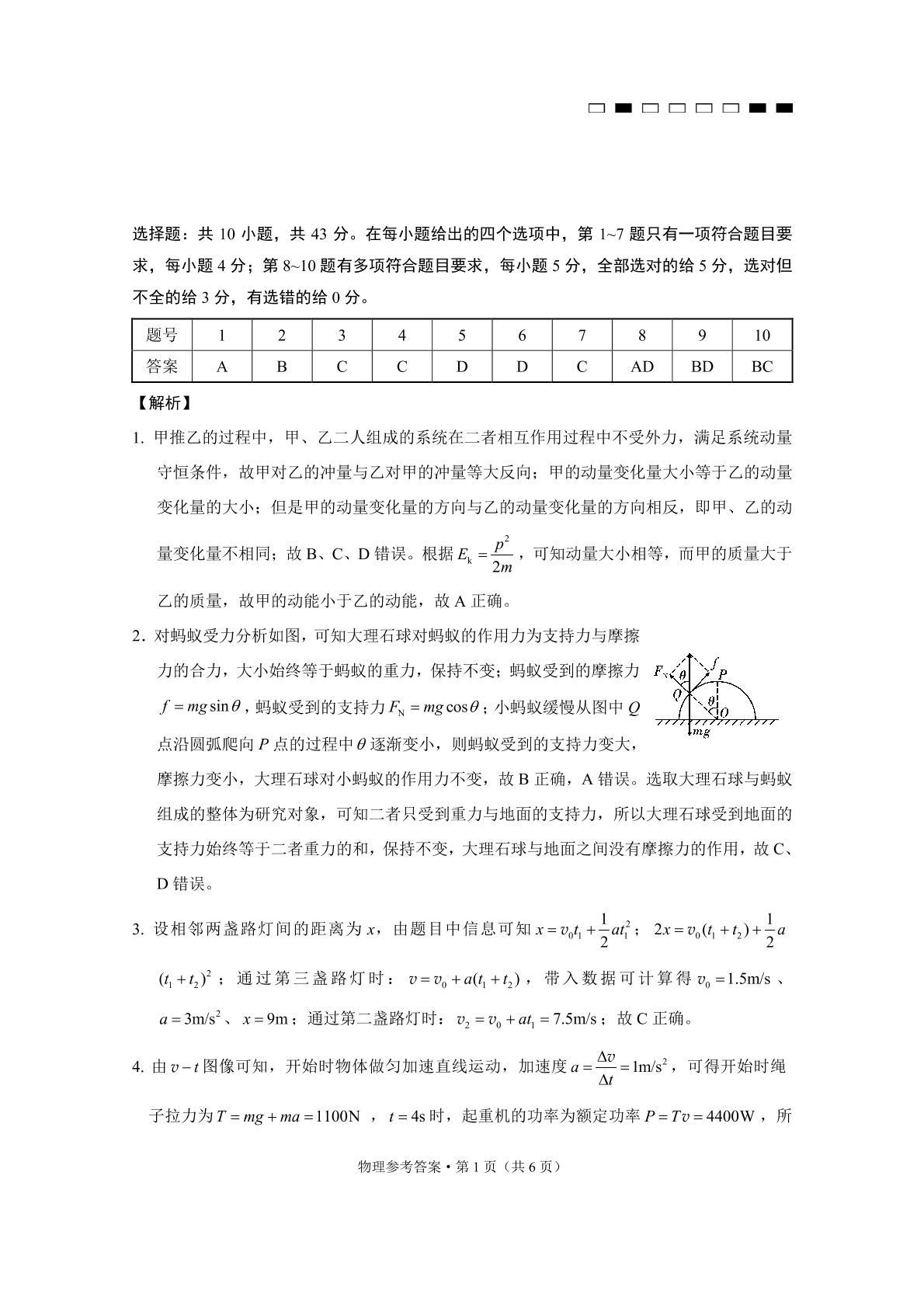 云南师范大学附属中学2025届高考适应性月考卷(七)物理答案